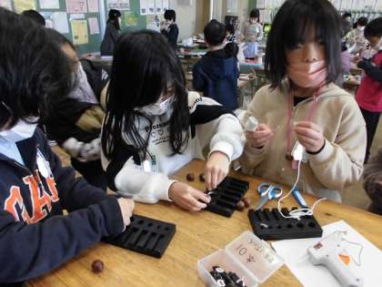 どんぐりごまやマラカス、けん玉、リースなどなど、自分の作りたい物を、自由に作りました。