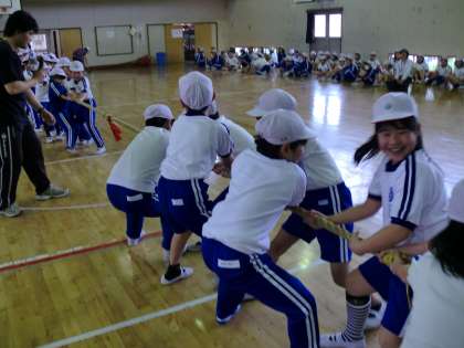 5月23日(月)の3校時に、体育館で、3年生全員と6年生全員が集まり、ふれあい活動を行いました。内容は、開会式・クラス対抗玉入れ・クラス対抗綱引き・閉会式などです。6年生が会をてきぱきと運営・進行し、みんな楽しく活動することができました。クラスごとの得点を集計したり、6年生が賞状を作り各クラスに渡してくれたりしました。閉会式では、3年生の各クラス1名ずつの代表が、立派に感想を発表しました。事前に(金曜日に)3年生と6年生が、3年生教室で名刺交換もしました。活動後は、3年生から6年生に、お礼の手紙を送る予定です。あまり異学年で一緒に活動する機会がない中、貴重な時間を過ごしました。