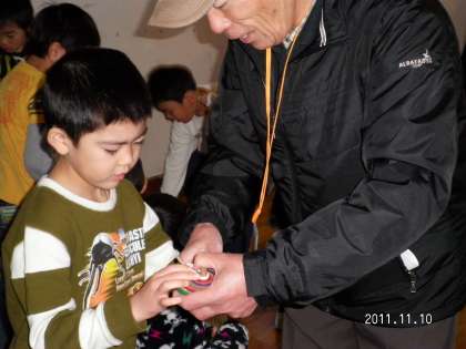 11月10日(木)に、大成老人クラブの方々に学校にきていただいて、『昔遊び』を楽しみました。おはじき、あやとり、お手玉、めんこ、こままわし、紙飛行機、紙風船、けん玉の8つの遊びを楽しく行いました。子供たちも、「おじいちゃん達いつくるの?」ととても楽しみにしていました。