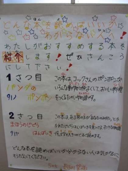 すてきな5年生のアイディアでもっと本を読む子供たちが増えるとうれしいです。