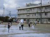 今、1年生では、生活科の時間に、たこあげをして遊んでいます。 今日は、日も出...
