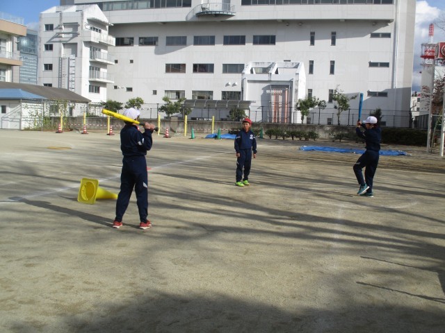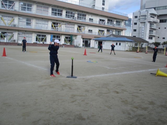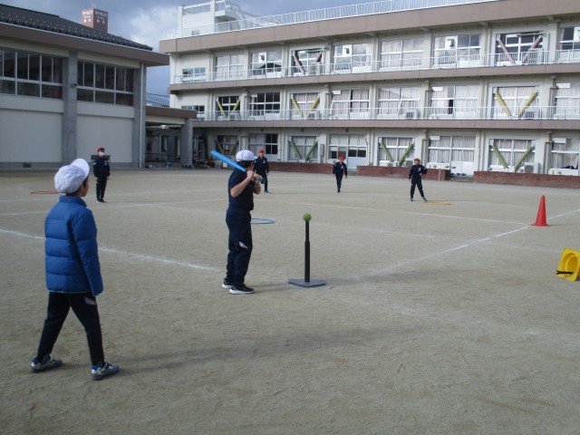 ベースボール型のTボールの学習を行っています。