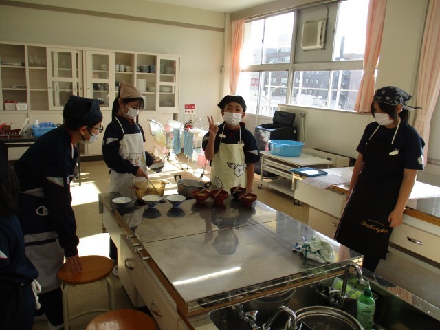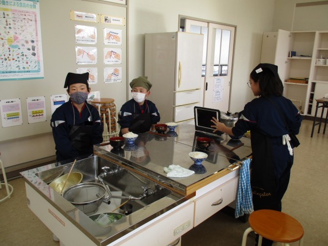 家庭科の調理実習でご飯を炊き、お味噌汁をつくりました!