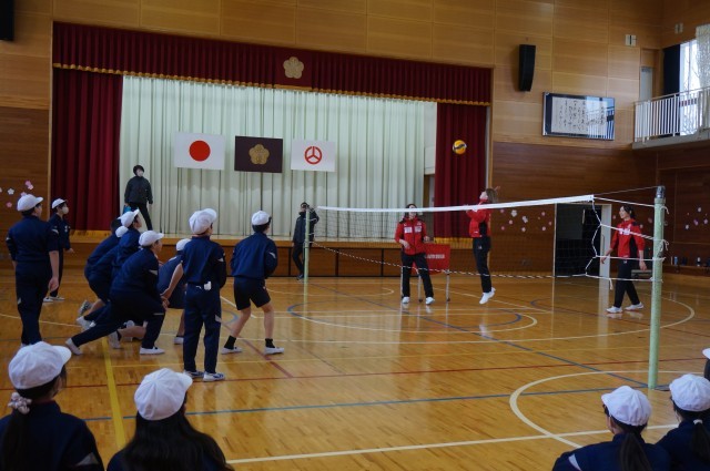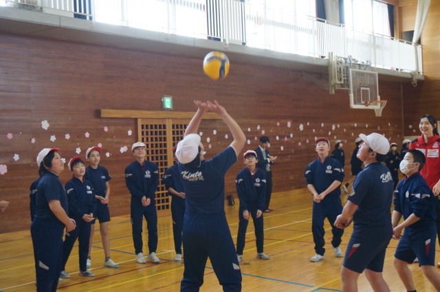 子どもたち、運動プログラムでは、ボールを使ったチームでできる運動やレシーブや実際にボールを打つといった活動に楽しく取り組みました。また、選手のスパイクを間近でみせていただき大盛り上がりで、あっという間の45分でした。