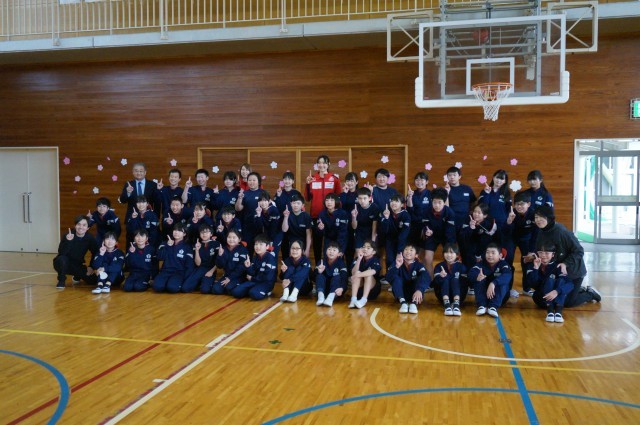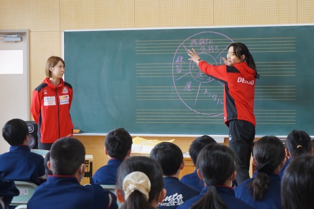 デンソーエアリービーズの選手・スタッフの方と運動プログラムを行ったり、自身の体験をもとにワークショップ形式でお話を聞いたりしました。