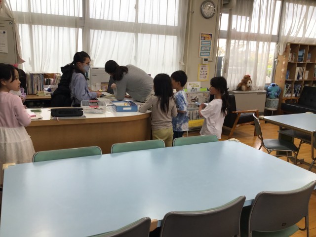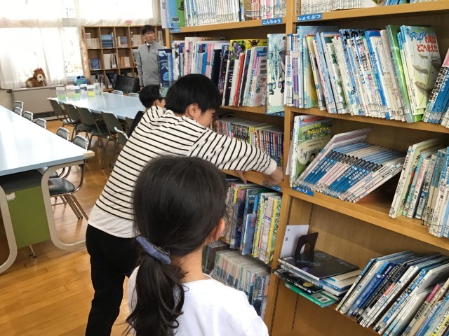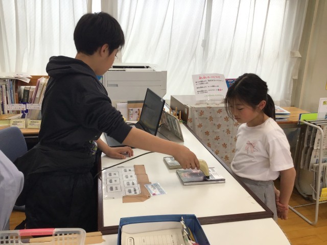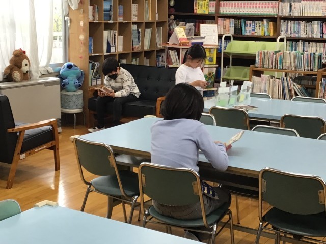 昼休みには図書を借りる人、図書室で読書する人が集まっていました。