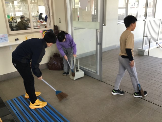 運動会の練習で、靴についた砂が昇降口にいっぱい落ちているなと思っていたところ、6年生が1人、2人…と現れて、掃き掃除を始めました。気づいたことを、行動に移せる金透小の子どもたちって素敵ですね。