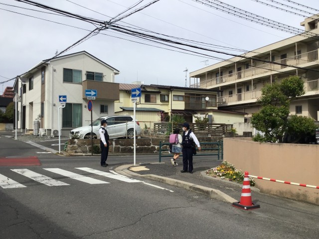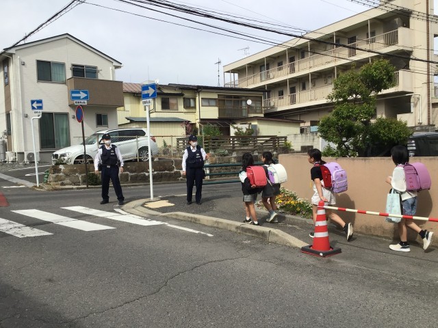 本日、下校時に警察の方々が見守りパトロールをしてくださいました。