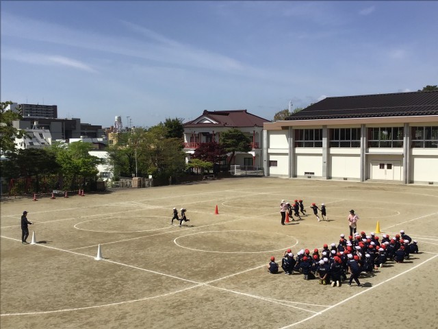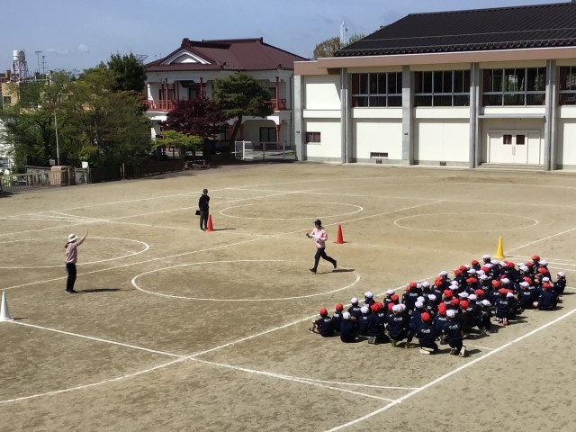 覗いてみると、中学年の子どもたちが運動会の練習をしていました。