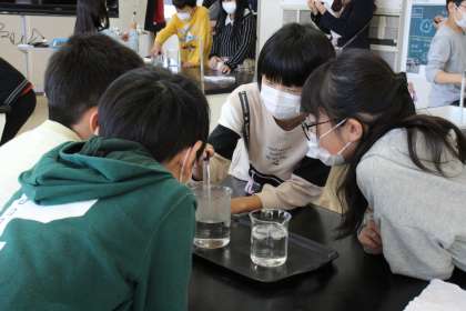 実験結果を基にした話し合い活動を通して、温度による水の体積変化についての問題を科学的に解決するとともに、身の回りの事物・現象について考えることで自然に親しむ心情を育てることができる授業