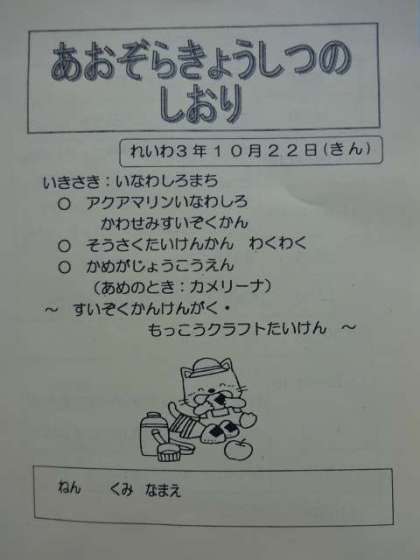 1、2組とも22日(金)に行われる「青空教室」について、