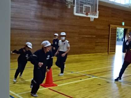 体育館で体育の授業中です。