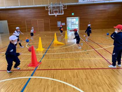 ボールを使ってさまざまな運動遊びをしているうちに