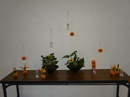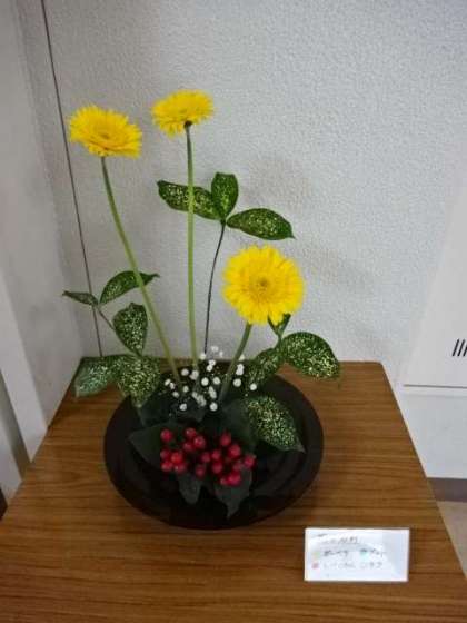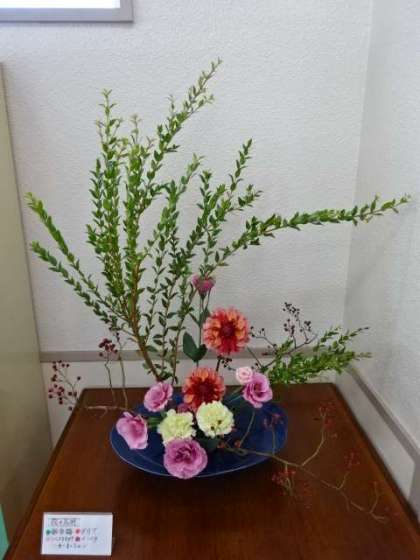 職員室前廊下に素敵な生け花を生けてくださいました。