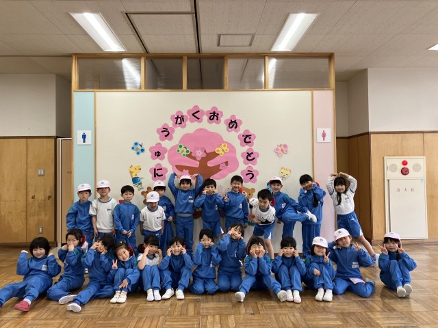 クラスの記念写真ハイポーズ♪この日は、運動着に着替えて校庭にGO!遊びたい遊具で...