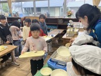 はじめての給食。メニューは「ポークカレーライス、コーンサラダ、ヨーグルト、牛乳」...