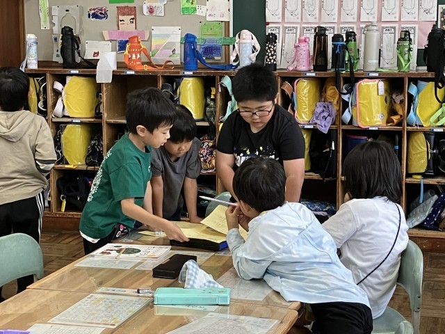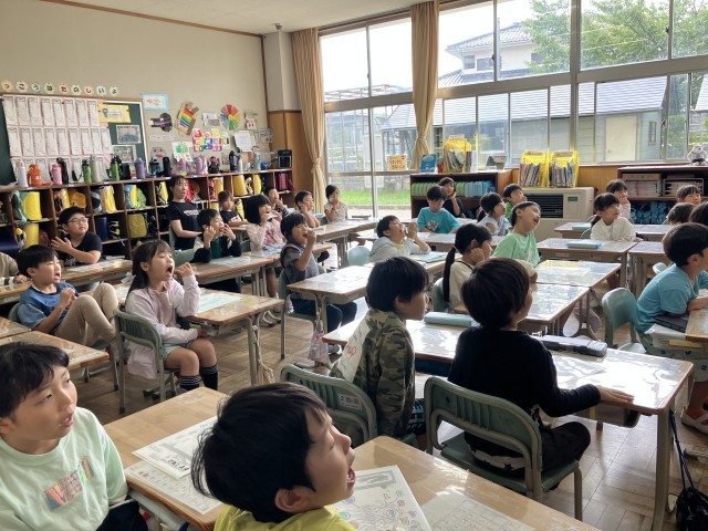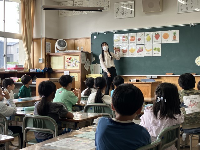 外国語の学習ではフルーツの単語について学びました。フルーツビンゴで盛り上がってました。