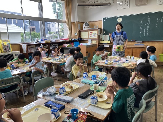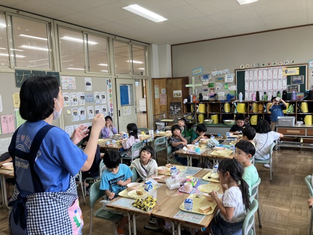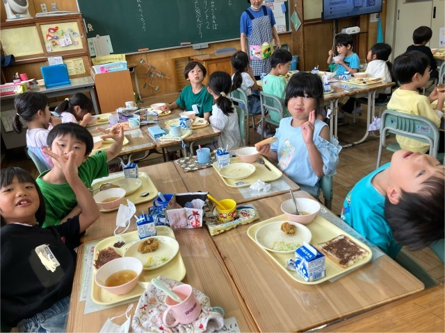 給食ももりもり食べています。苦手なものも一口パクッ。様々な食材に出合います。
