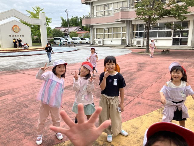昼休みは中庭で遊べる日があります。給食の片付けが早くできた日は、たくさん自由時間がありますね。うれしい♪