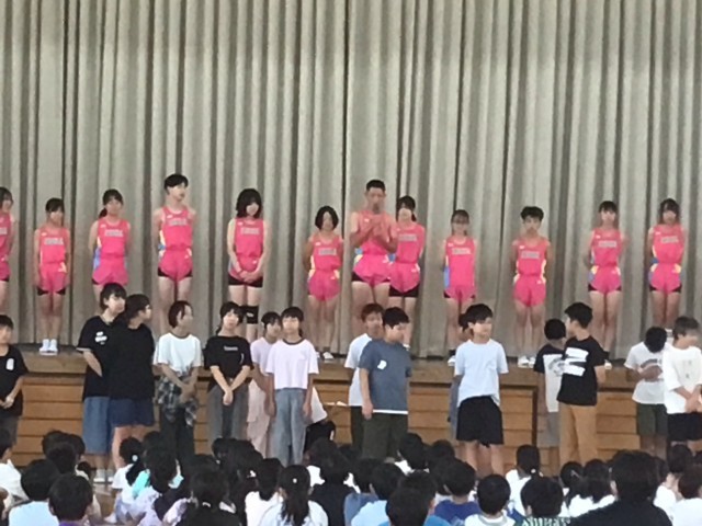 「授業中や放課後、一生懸命練習している姿がありました。6年生には3つの「勝つ」を意識してがんばって欲しいです。1つ目はマナーで勝つ。2つ目は準備で勝つ。3つ目は自分に勝つです。マナー良く交歓会に参加し、準備を怠らず、自分に勝って自己ベストを目指して頑張ることが大切です。」と励ましの言葉をいただきました。