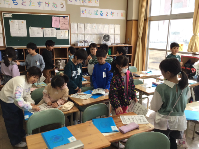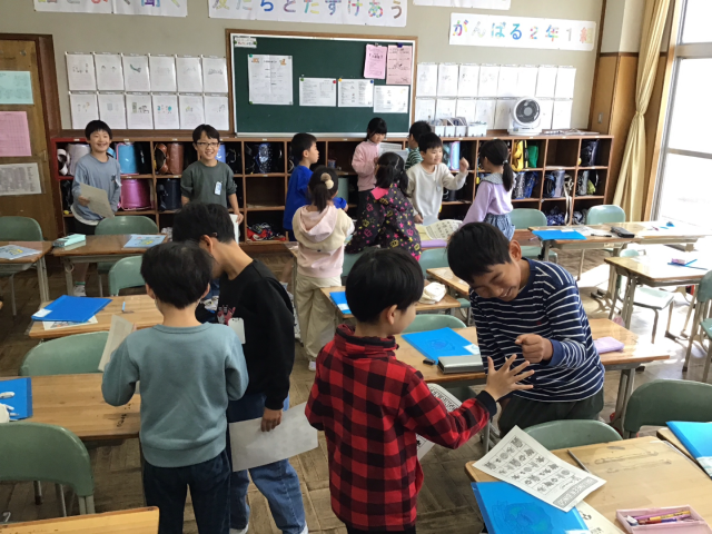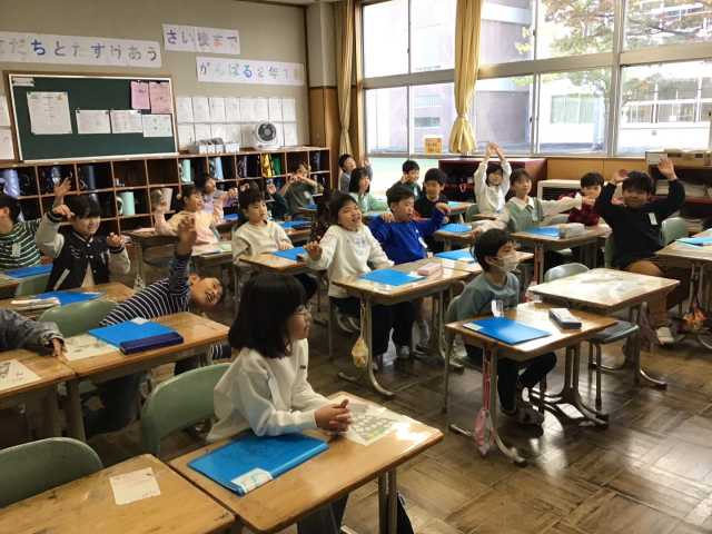 先日、AETの先生と一緒に英語の学習をしました。ハロウィンに出てくるキャラクターの言葉を使って、ビンゴゲームをしました。体を動かしながら単語の練習して、ゲームでは「Who are you?」「I'm a monster.」などと会話をしながらゲームを楽しみました。お友達とたくさん英会話をして、とても盛り上がった時間でした。