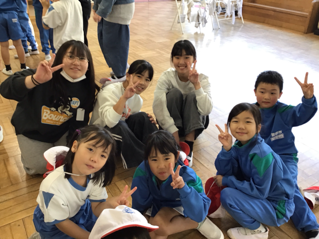 グループごとに分かれて、6年生が考えてくれたゲームで楽しみましたよ。6年生は分かりやすいルールの設定にしてくれたり、力加減を合わせてくれたりして、1年生が楽しめる工夫をしていました。おかげで1年生は思いっきり楽しんで遊ぶことができました。