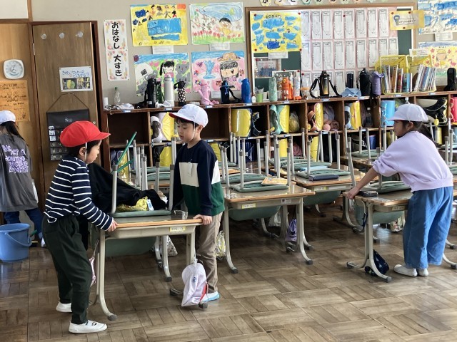1年生だけでのお掃除です。みんな張り切っています。(いつも張り切っていますが)