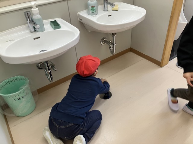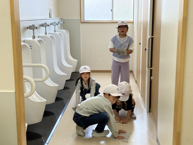 お掃除がんばる1年生。きれいな教室、きれいなトイレ気持ちいいですね♪