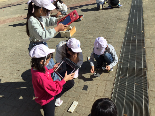 理科の授業で、集めた日光の実験をしました。今回は、虫めがねで日光を集めたところの、明るさやあたたかさはどうなるのかを調べました。グループで虫めがねを紙に近づけたり、遠ざけたりして、試行錯誤しながら実験を進めました。紙がこげる様子に驚きながら実験をする姿が見られました。次の時間では、単元の振り返りをして、太陽の光についての学びをまとめていきます。