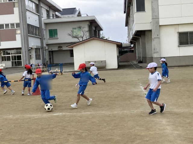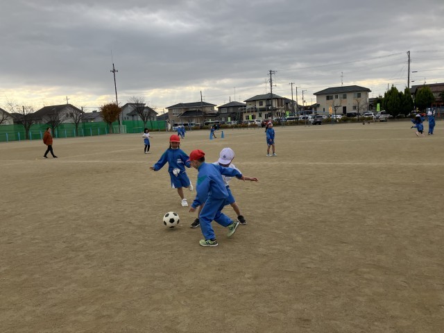 ボールをけること、パスをすること、ドリブルをしてすすむこと…などの練習をしてきました。声を出して味方の子の名前を呼ぶ姿がすてきですね。