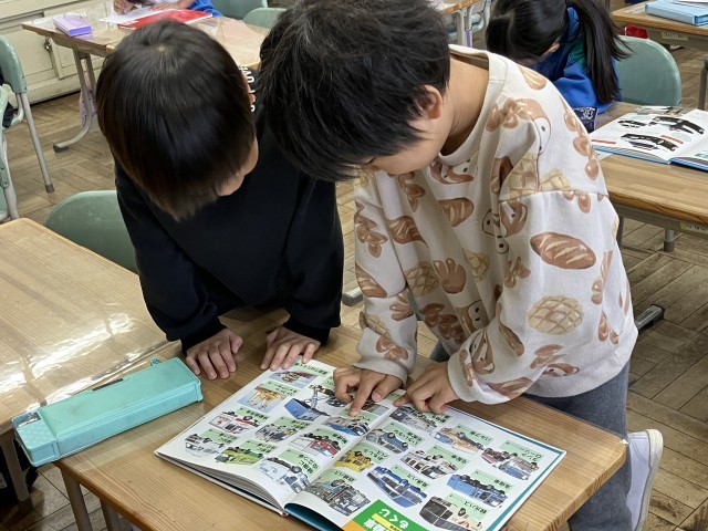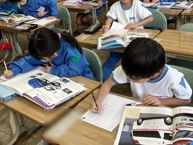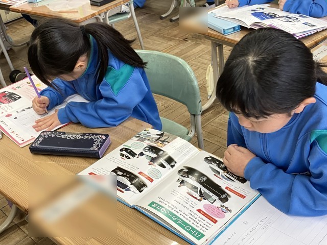 国語科では、説明文を読み、自分で書く学習をしています。「しごと」と「つくり」の順序を考えています。