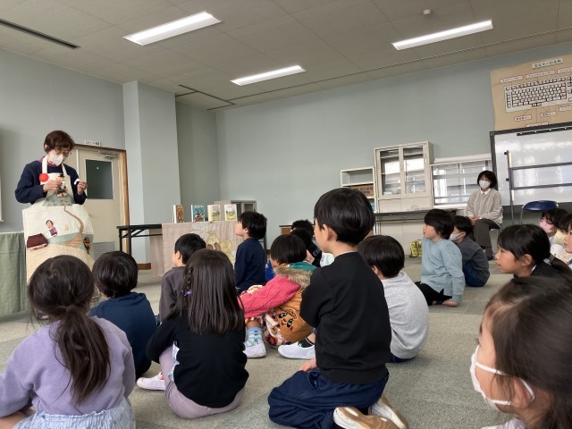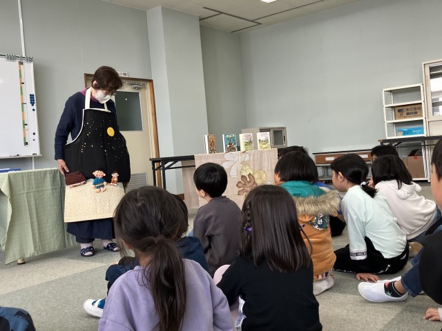 本の読み聞かせだけでなく、ペープサートやエプロンシアター、語り…さまざまな方法でたくさんのお話の世界にひたった1年生です。