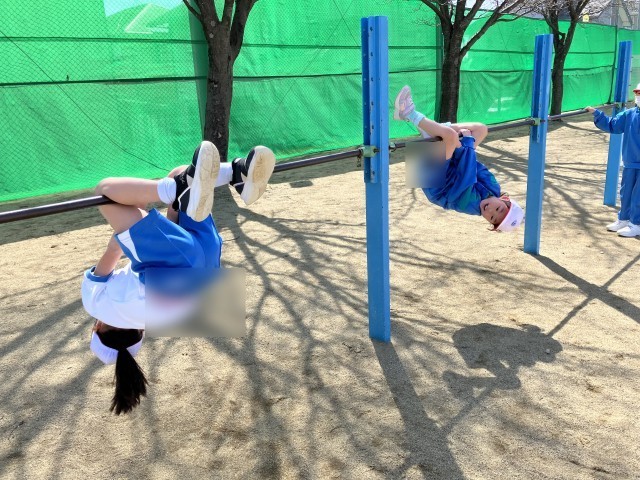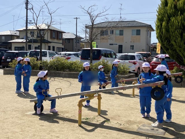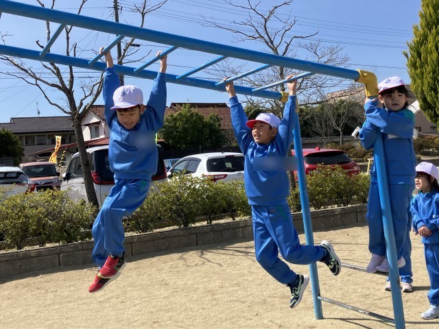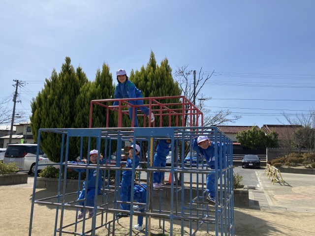 遊びたい遊具で遊んだり、おにごっこをしたり…春空のもと、元気よく体を動かしました。