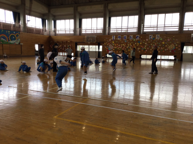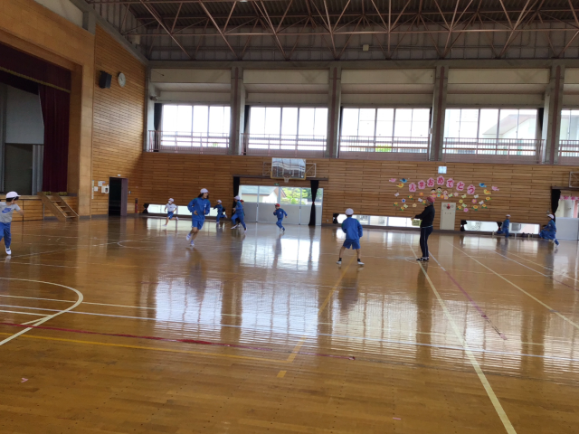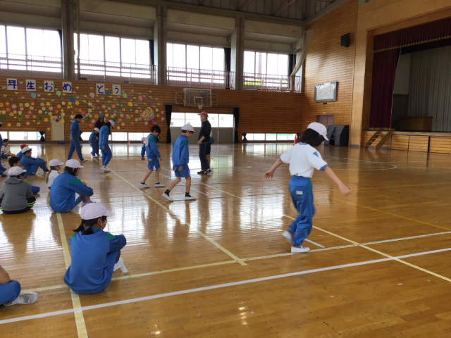 4月のなかひまトレーニングは、1年生に合わせて体操やストレッチの仕方を確認しながらゆっくり行いました。第2回の今回は、縄を使って体の平衡感覚を養う運動です。上学年からお手本を見せながら取り組みました。最後は楽しく追いかけっこをして楽しみました。