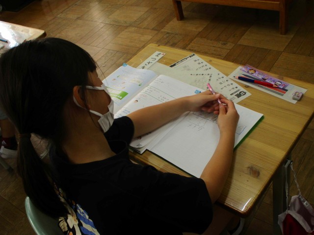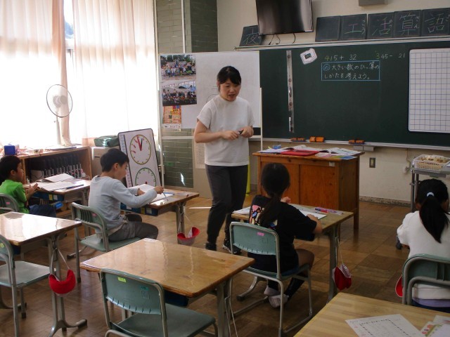 2年生は大きな数の筆算に挑戦です。今まで学習したことをもとに、よく考えていました。答えを早く出したくて仕方ないようでした。「分かる」って、意欲の源ですね。