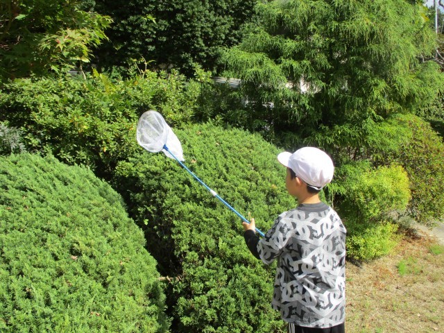 今、学校で静かなブームになっているのが虫取りとタイヤ遊びです。虫取りは低学年が夢中になり、タイヤ遊びは多学年で交流しています。