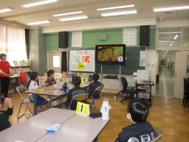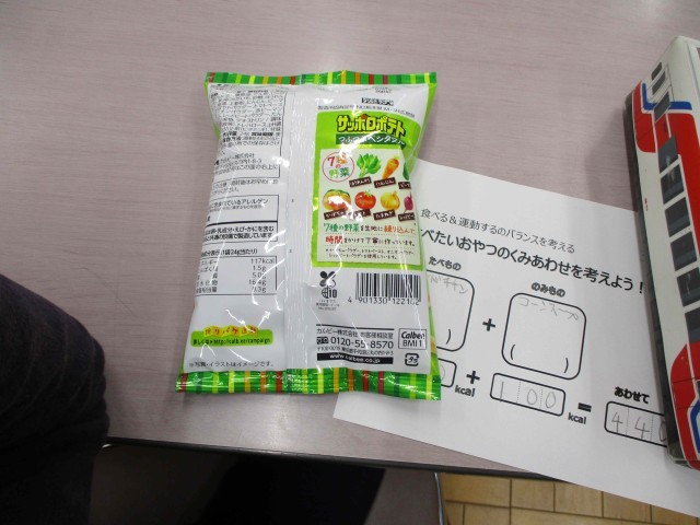 4年生を対象に「カルビースナックスクール」を実施しました。ポテトチップスを例に、一度のおやつに適した量やカロリー数について楽しく学びました。カルビーのお土産もいただき、大満足の食育の授業でした。