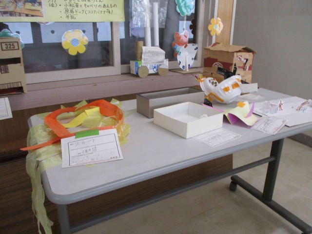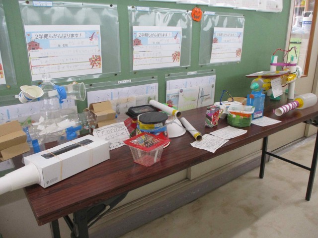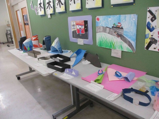 芸術の秋が谷田川小学校にもやってきました。各教室の前には図工の作品が展示され、校舎内が華やいでいます。