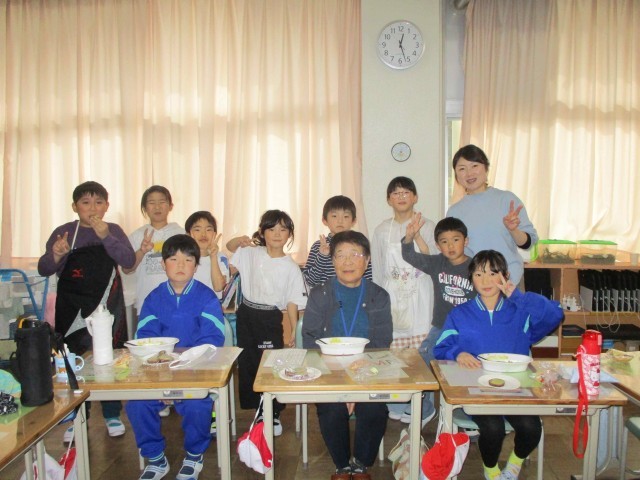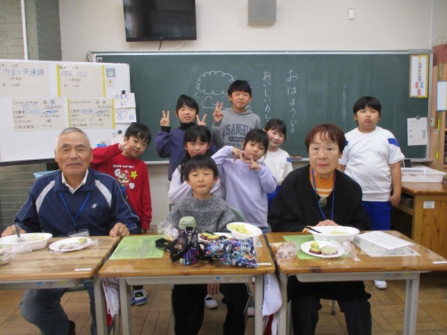 谷田川環境を守る会と谷田川寿会の皆様においでいただき、子ども達と一緒にカレーライスとふかし芋を食べました。新米はふっくらと味が大変良く、さつまいもも甘くてとても美味しくいただきました。お手伝いいただいた地域の皆様に感謝です。