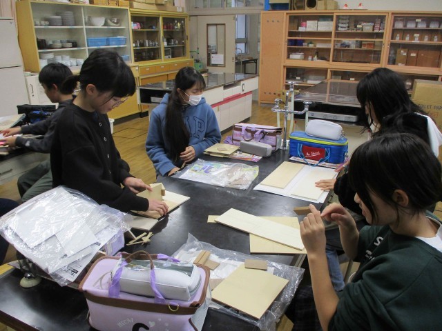 5年生は針金を題材に、6年生は一枚の板を題材に作品作りです。題材の特徴を生かしながらイメージを膨らませているようです。どんな作品に仕上がるのか楽しみです。