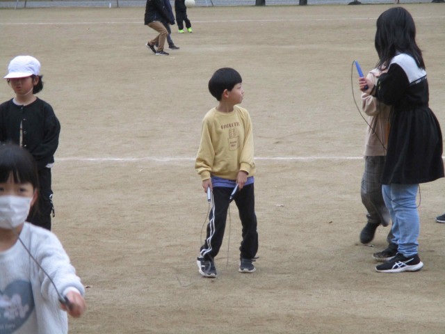 登校するとすぐに子どもたちは縄跳びに向かいます。下の学年の子どもたちは、高学年の跳ぶ姿を見て良い刺激をもらっているようです。