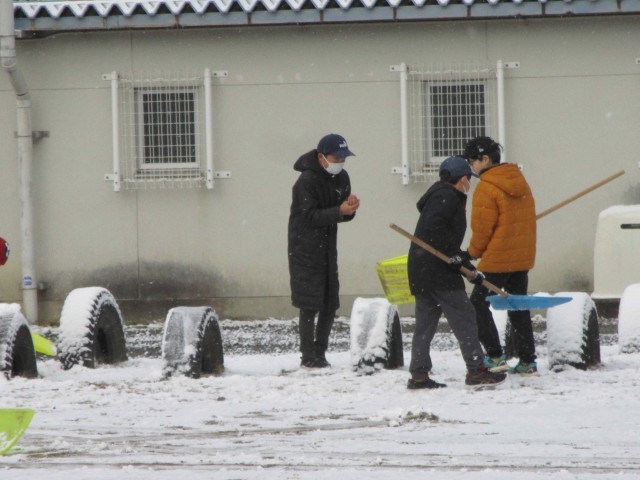 今年度初の雪が積もり、子どもたちは嬉しそうに雪遊びです。子どもたちの歓声が校長室まで響いています。