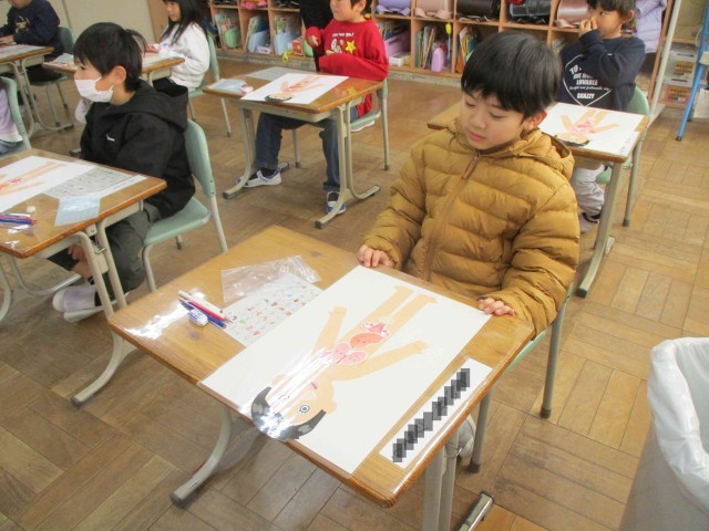1年生は健康教育の一環として、体の内臓や各器官がどんな役割をしているのか学びました。性教育の第一歩としての内容でもあり、男女の器官の違いなどにも触れました。