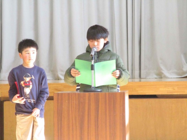 82日間の第2学期の終業式、全校生がとても立派な態度で式に参加することが出来ました。式中、今学期の反省と冬休みのめあてを発表してくれたお友達も大変立派に発表してくれました。明日からの冬休み十分楽しんで、1月8日元気に帰ってきてください。