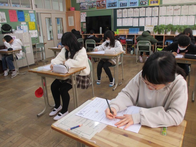 3学期初日ですが、各学年とも早速活動開始です。3学期の目標を決める学年、冬休みの確かめテストに取り組む学年など活動は様々です。冬休みムードも一気に吹き飛んだのではないでしょうか。