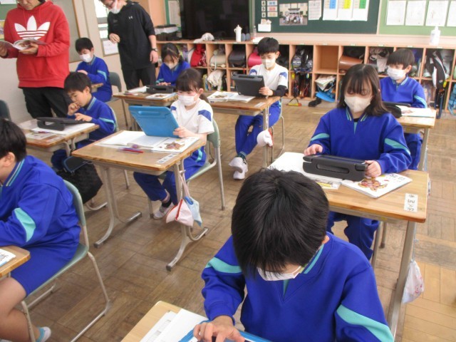 4年生の算数は「少数×整数」に挑戦です。自分の考えをしっかりともち、タブレットを駆使しながら課題を解決していきます。今日の課題はみんなクリアできたようです。