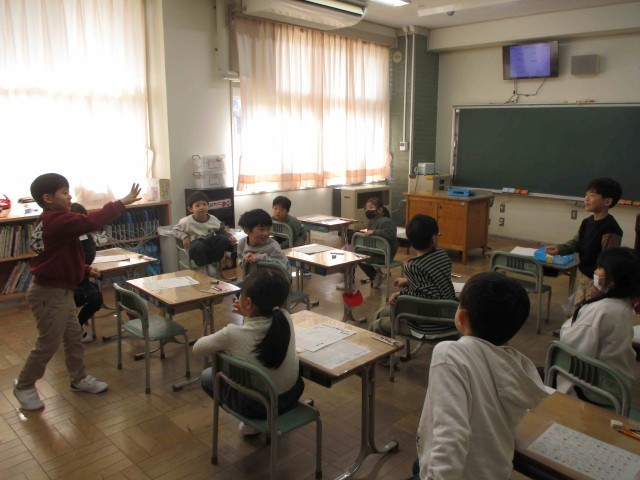 1年生では縄跳び記録会の開閉会式の役割決めをしていました。自分がやりたい役割があっても、友達に譲ってあげる優しい姿が見られました。