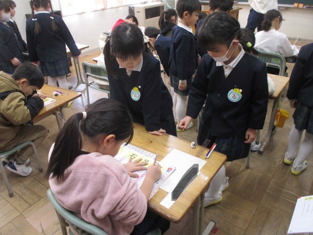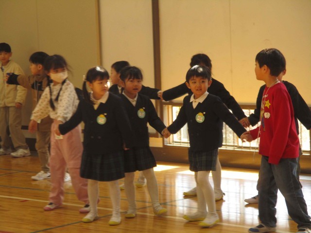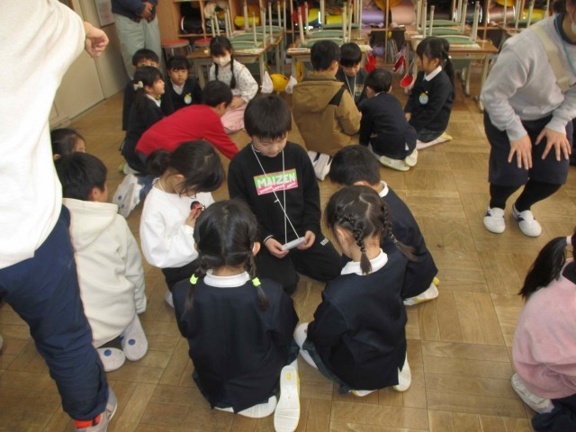 今日はつつみ幼稚園からかわいいお客さんが来てくれました。16名の年長さんと1年生の交流会です。普段の学習の様子を見てもらったり、一緒に体を動かしたりする中で、1年間の成長を感じる交流会にもなりました。