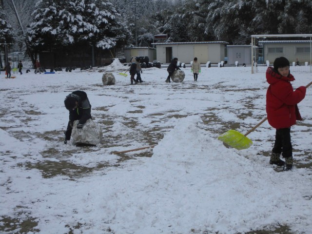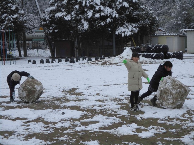今日の雪が今年度最後でしょうか。2,3年生は朝から校庭に出て、雪遊びです。もしかしたら雪の芸術でしょうか。どちらにしても、春間近のなごり雪を楽しんでほしいです。