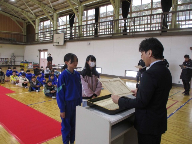 3学期、各種コンクール等で賞をいただいた子ども達の表彰を行いました。毎回たくさんの子どもに賞状を伝達できることはとても嬉しいことですね。